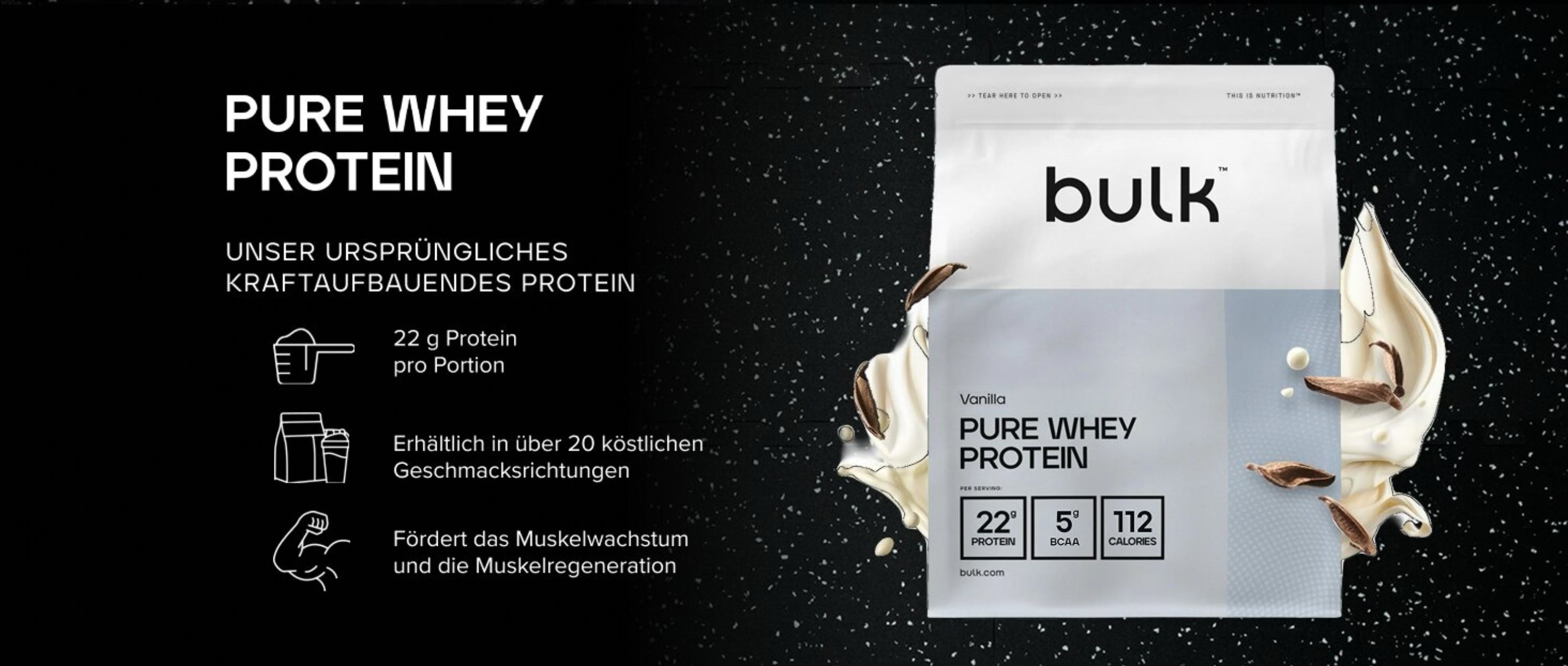 Pure Whey Protein™ ist eine meistverkaufte Proteinpulverformel mit mindestens 22 g Protein und 5 g BCAAs pro Portion. Es unterstützt die tägliche Proteinaufnahme und ist vielseitig einsetzbar – ideal zum Backen, für Smoothies oder einfach zum Mischen mit Wasser oder Milch.